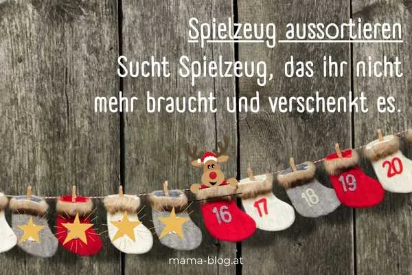 In der Vorweihnachtszeit ist es eine schöne Tradition, das Spielzeug der Kinder zu überprüfen und gemeinsam mit ihnen Spielzeuge auszusortieren, die sie nicht mehr brauchen. Diese können dann an bedürftige Kinder verschenkt werden, um ihnen in der festlichen Zeit eine Freude zu bereiten.