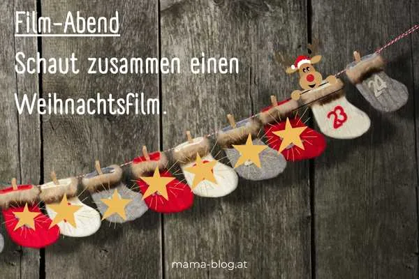 - Filmwahl: Lasst jedes Familienmitglied mitentscheiden. Wenn ihr euch nicht einig werdet, dann stimmt ab oder lost es aus. Hier findest du eine Liste von Weihnachtsfilmen für die ganze Familie. Es kann aber natürlich auch ein ganz anderer Film sein.