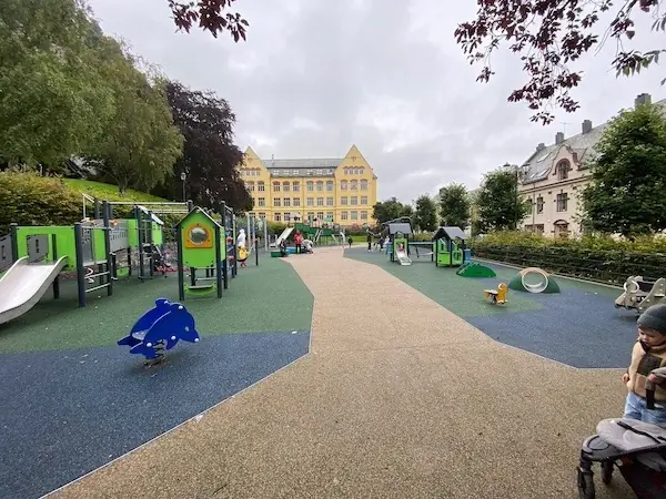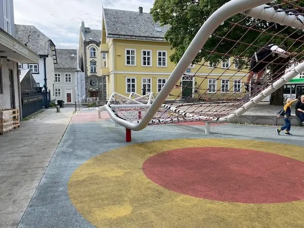In Haugesund kann man gut zu Fuß in ca. 15 Minuten in die Stadt spazieren. Dort gibt es auch die längste Fußgängerzone von Norwegen. Mitten drin gibt es einen Spielplatz, der auch meinem 9-jährigen noch gefallen hat.