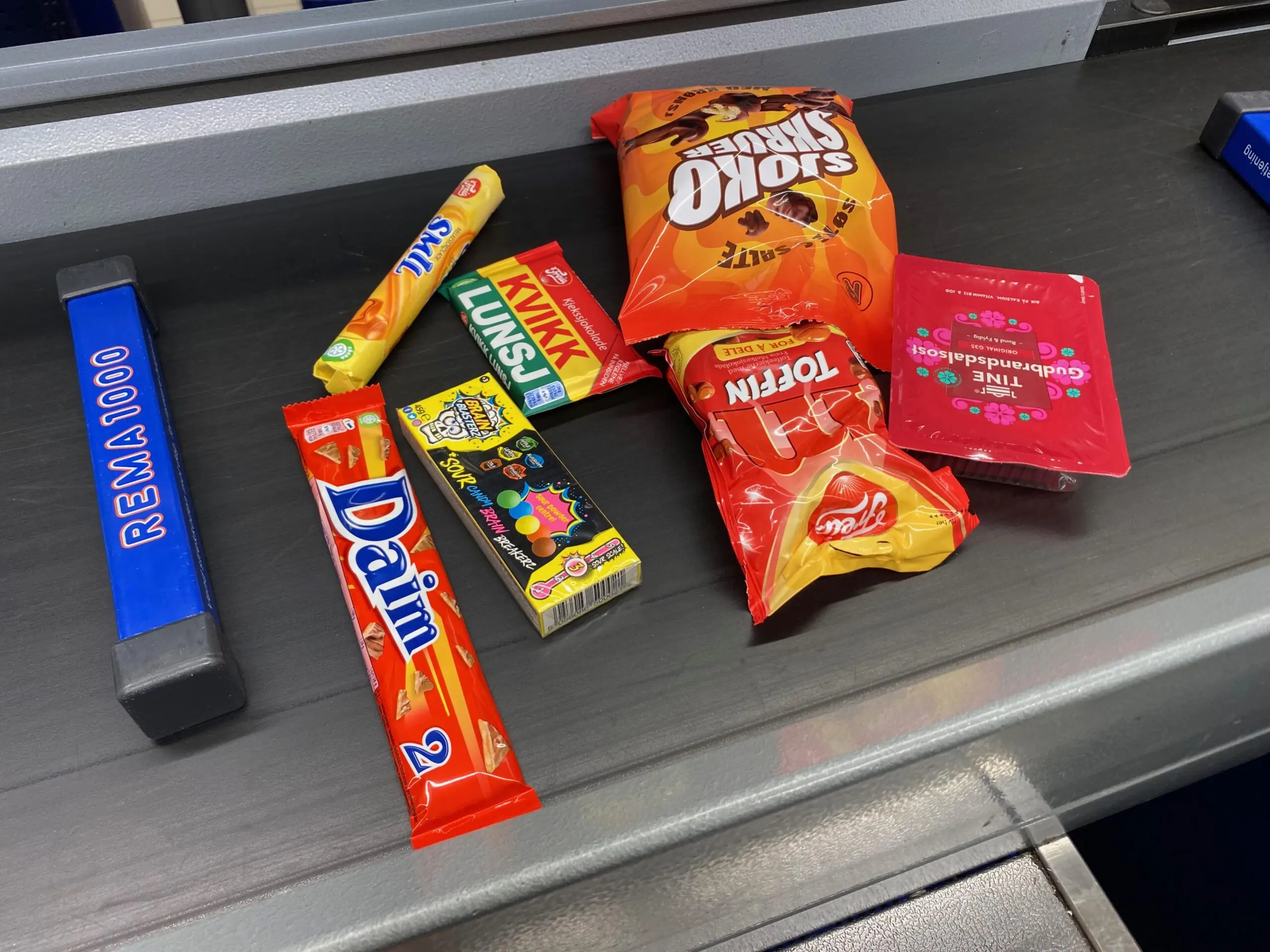 Beim Retourweg haben wir im Supermarkt „Rama 1000“ einen Stopp eingelegt. Wir wollten typisch norwegischeKöstlichkeiten probieren. Also haben wir uns Brunost (karamellisierter Braunkäse), Kvikk Lunsj (sowas wie Kitkat) und ein paar andere Süßigkeiten gekauft.