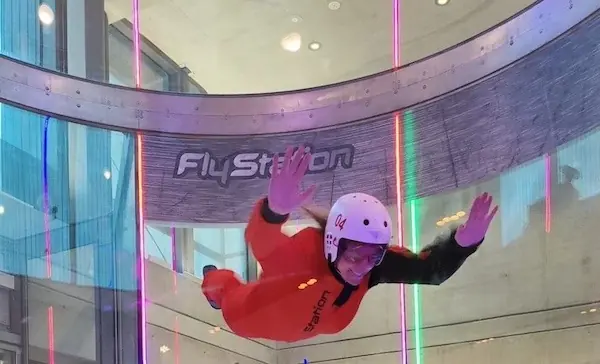 Ich habe meinem Sohn zu seinem Geburtstag einen Gutschein für Bodyflying in der Flystation in München geschenkt. Nicht ganz ohne Hintergedanken 😅 Für mich gab es nämlich gleich noch einen dazu. , wieder dieses unglaubliche Gefühl des Fallschirmspringens zu erleben, denn ich habe gleichzeitig einen Gutschein für mich mitgekauft.