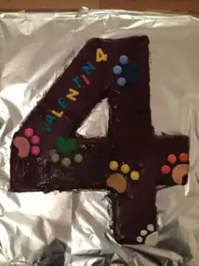 Seit seinem 3. Geburtstag gibt es immer Puddingkuchen mit Schokoglasur.