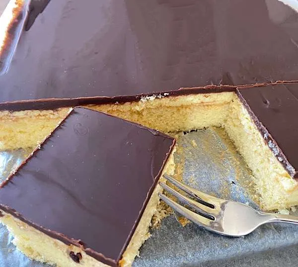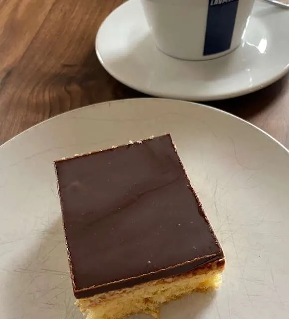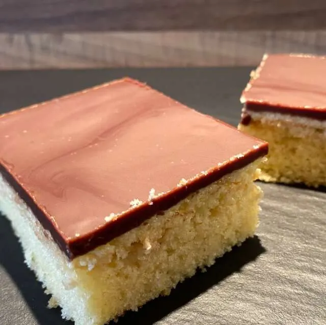 Wenn du die Zeit nicht hast, dann unbedingt warten, bis die Schokoglasur hart geworden ist und erst danach schneiden.
