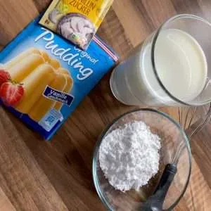 Die Puddingcreme ist das Herzstück des Puddingkuchens mit Schokoglasur und verleiht ihm seinen unvergleichlich leckeren Geschmack. Mit nur wenigen Zutaten wie Milch und Vanillepuddingpulver lässt sich diese Creme schnell und einfach zubereiten. Dazu nur die reduzierte Milchmenge nach Packungsanleitung am Herd zubereiten.