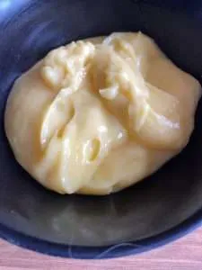 - heiße Creme mit Klarsichtfolie abdecken und auskühlen lassen