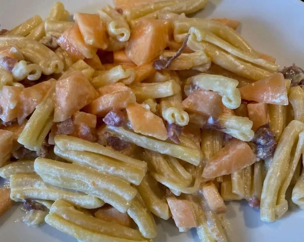 - Muschelpasta mit Kürbis und Speck