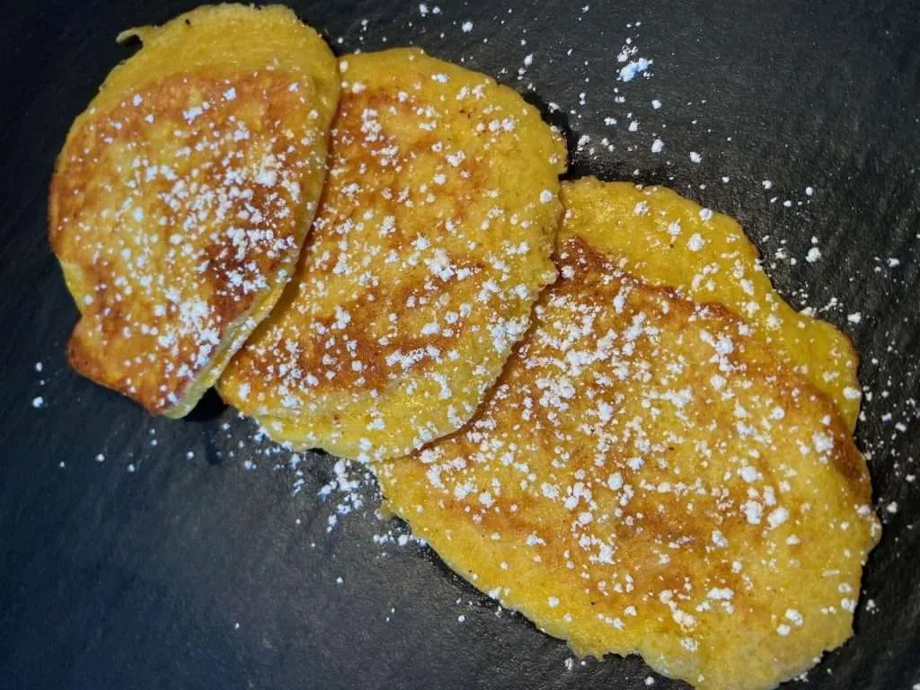 Sie sind mit nur 4 Zutaten und verstecktem Gemüse ideal für das schnelle Mittagessen. Du kannst sie süß aber auch salzig essen und findest das REZEPT für die Maisfladen auf meinem Blog.